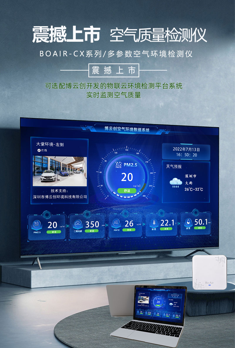´óÆÁϵͳ´óÆø»·¾³¼ì²âÒÇϵͳÊÇÓÉÉîÛÚÊÐPAÊÓѶ»·¾³¿Æ¼¼ÓÐÏÞ¹«Ë¾Õë¶ÔÈÕǰÊÒÄÚ»·¾³¿ÕÆøÖÊÁ¿Ñз¢Éú²úµÄÒ»Ì×É豸£¬Ö÷ÒªÓÉBOAIRµÈϵÁмì²âÉ豸¡¢ÔÆÆ½Ì¨·þÎñÆ÷¡¢µçÊÓ»úÈý²¿·Ö×é³É¡£ÓÃÓÚ²âÁ¿ÊÒÄÚ»·¾³Î¶ȡ¢Êª¶È¡¢PM2.5¡¢PM10¡¢CO2¡¢¼×È©¡¢CO¡¢TVOCµÈŨ¶È£¬ÊµÊ±¼à²âÌṩÓÐЧµÄÊý¾ÝÏÔʾÖÁµçÊÓ»úÉÏ£¬´ËÉ豸Ö÷ÒªÊÊÓÃÓÚѧУ½ÌÊÒ¡¢ÖÇÄܼҾӡ¢°ì¹«Â¥¡¢¾Æµê´óÌᢷ¿µØ²úÕ¹Ìü¡¢±ðÊû¡¢Ò½Ôº¡¢KTV»áËù¡¢¸ß¶Ë²ÍÌüµÈ»·¾³¡£