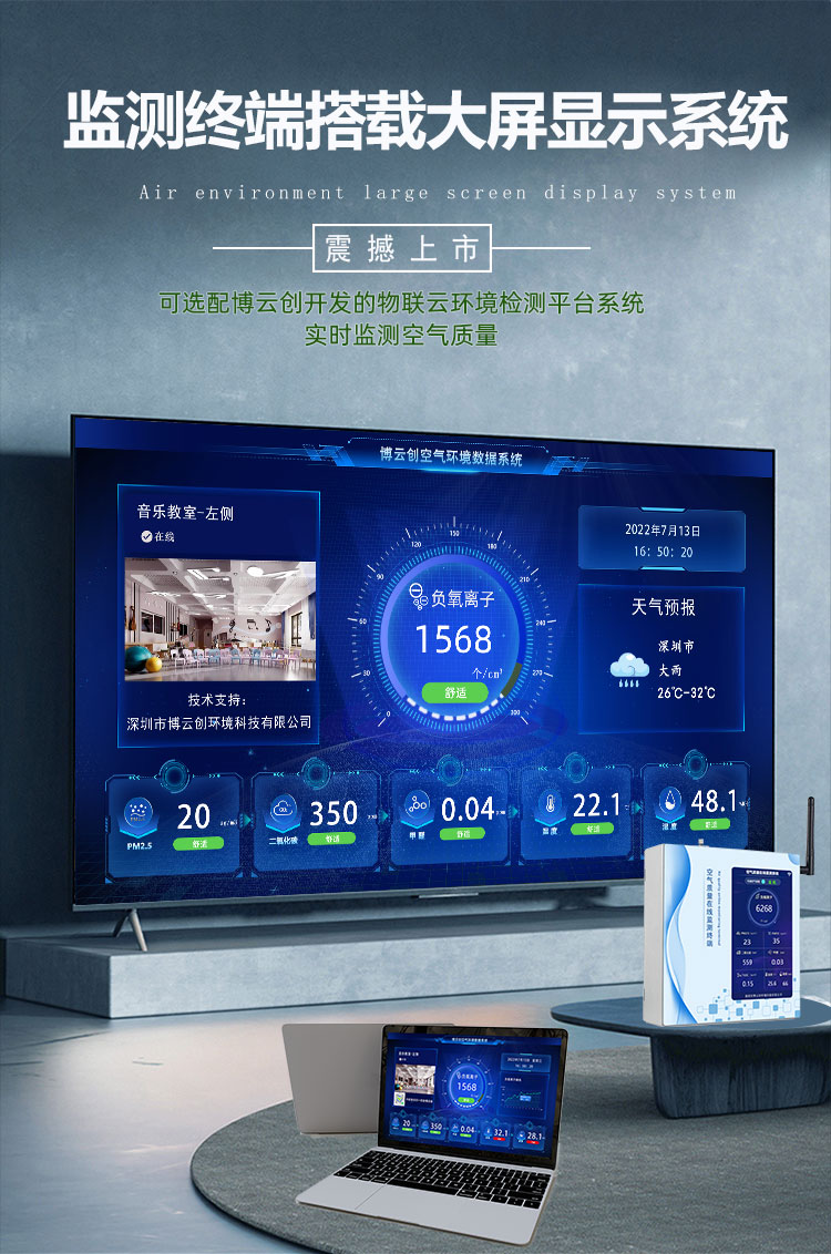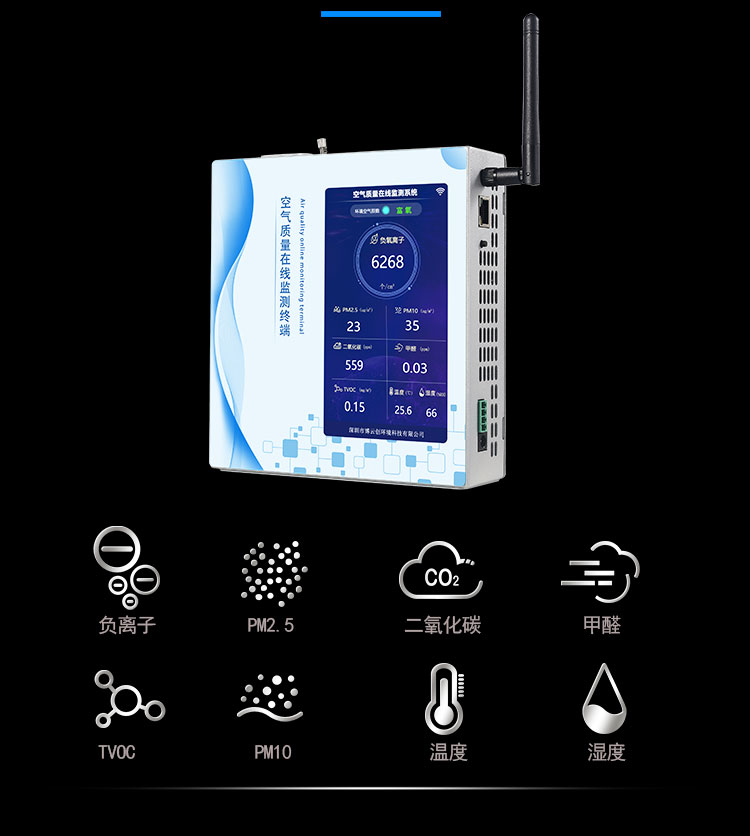 ¿ÕÆø¸ºÑõÀë×Ó¼ì²âÒÇ¿ÉͬʱÓÃÓÚ¼ì²âÊÒÄÚζÈ¡¢Êª¶È¡¢PM2.5¡¢PM10¡¢¼×È©¡¢TVOC¡¢CO2¡¢¸ºÑõÀë×ӵȲÎÊý£»×Ô´ø5´çÒº¾§ÏÔʾÆÁʵʱÏÔʾ¸÷²ÎÊý¼à²âŨ¶ÈÖµ£¬²¢¿Éͨ¹ýRS485¡¢WIFI¡¢ÒÔÌ«ÍøµÈ·½Ê½½«ÐźŴ«ÊäÖÁÔÆ¹ÜÀíÆ½Ì¨£¬Í¨¹ýµçÄÔºǫ́¡¢ÊÖ»ú΢ÐŶË¡¢´óÆÁµçÊÓ»úµÈ·½Ê½Ô¶³Ì²é¿´Õ¹Ê¾Êý¾Ý£»¹¦Äܷdz£ÍêÉÆ£¬»ù±¾º­¸ÇÁË·´Ó³¿ÕÆøÖÊÁ¿µÄ¸÷¸öÖ¸±ê¡£